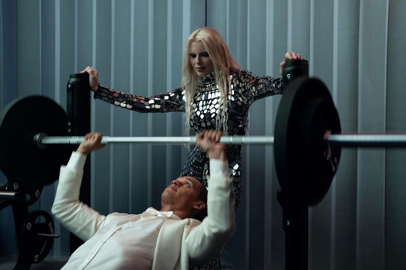 Elsie (Julia Fox) and Webcam (Tyriq Withers) in HIM, directed by Justin Tipping.