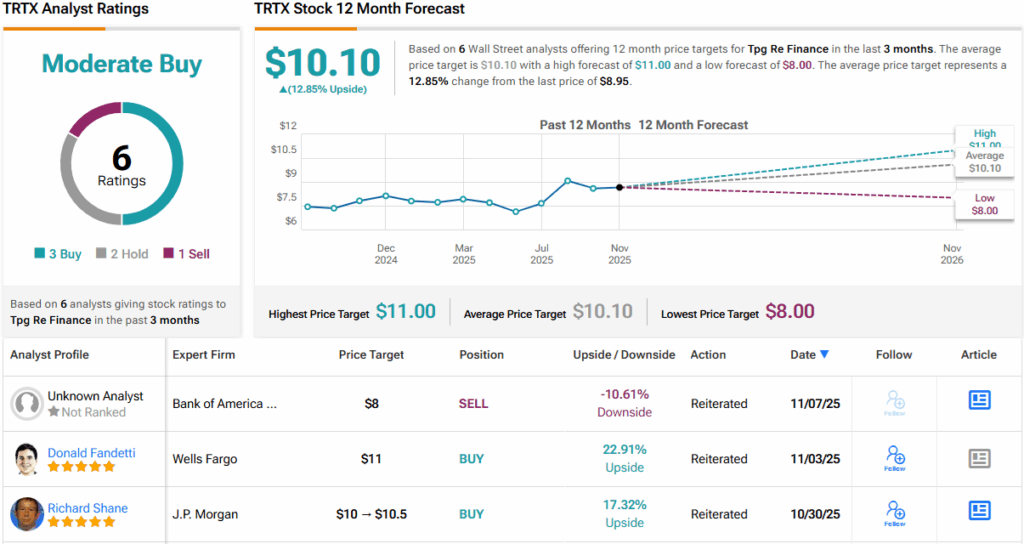 In general, TRTX brings a Moderate Buy agreement score based upon 6 expert evaluations: 3 Purchases, 2 Holds, and 1 Offer. At an existing cost of $8.95, the stock’s $10.10 typical cost target indicate a ~ 13% upside from present levels. (See TRTX stock projection)