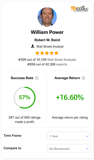 Remarkably, Power is ranked No. 309 amongst more than 10,100 experts on TipRanks. He has a success rate of 57%, with a typical return per score of 16.6% over a 1 year duration.