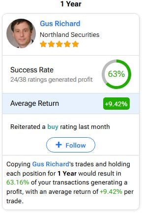 When we take a look at Richard’s suggestion for Intel stock, we see that over the previous year, Richard has actually had a 63% success rate on the stock. Plus, he has actually made a typical return of 9.42% throughout that duration.