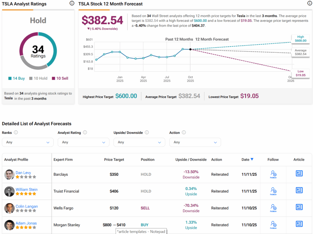 Turning to Wall Street, experts have a Hold agreement ranking on TSLA stock based upon 14 Buys, 10 Holds, and 10 Sells appointed in the previous 3 months, as shown by the graphic listed below. In addition, the typical TSLA cost target of $382.54 per share indicates 5.4% drawback threat.