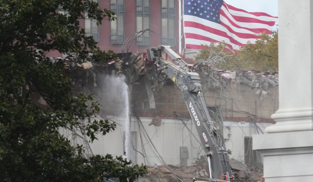 President Trump on Wednesday safeguarded his choice to destroy a part of the White Home East Wing to develop a ballroom, stating that the demolition was required “to do it appropriately.”
